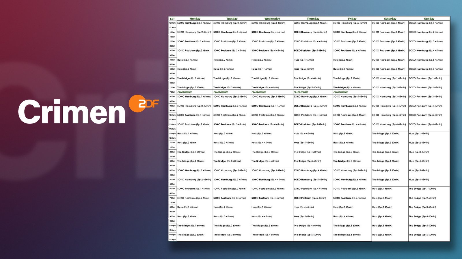 El equipo de Luna y Sophie incluye al jefe Bernhard Henschel, los colegas David Grünbaum y Christoph Westermann, el forense Werner Vense y el experto en huellas Thomas Brandner.keyboard_arrow_leftkeyboard_arrow_rightPROGRAMACIÓN